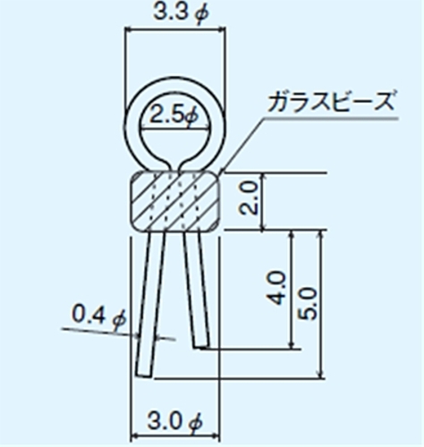 ・オシロスコープのプローブが全方向から引掛けられます。・ガラスビーズの色は10種類ありますので、信号ラインごとに色わけすることができます。・材質……リン青銅0.4φ・処理……LC-2-G……ニッケル下地金メッキLC-2-S……ニッケル下地スズメッキ・プリント板取付穴径……1.0φ・使用温度範囲……-40~+150℃・ビーズ色種類……黒、茶、赤、ダイダイ、黄、ウグイス、緑、空、紫、白・御注意茶、赤、ダイ、黄の4色にはRoHSで規制されているカドミウムがガラスの中に含有しています。技術的にカドミウムなしでは製造不可能の為、下記のLC-22を用意しています。残りの6色についてはカドミウムは含有していません。(ただし除外規定があります。総合カタログ18ページ御参照下さい。)