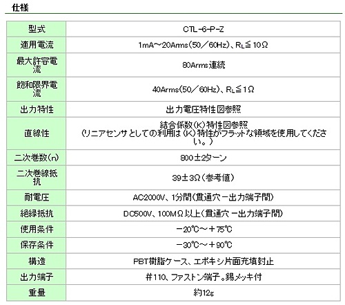 ・800:1の高変流比で、二次電流が小さく直接電子回路へのインターフェースが可能。