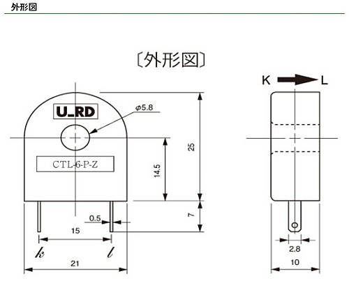 URD(ユー・アール・ディー) プリント板取付、精密計測用の小型・標準交流電流センサ CTL-6-P-Z