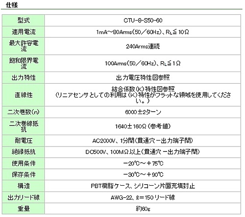 URD(ユー・アール・ディー) 高変流比・大出力・高精度交流電流センサ CTU-8-S50-60