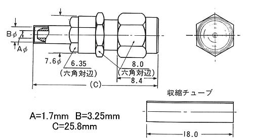 ●コード導入径(mm)または適合ケーブル:RG-174/URG-188A/URG-316/U