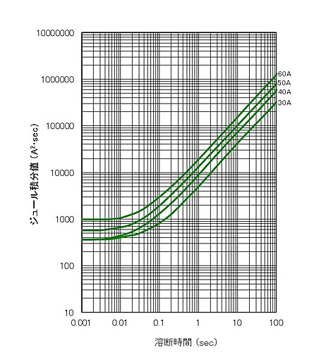 <仕様>●使用温度範囲 :-40~+125℃●定格電流 :30A、40A、50A、60A●定格電圧 :60VDC●電圧降下 :100mV以下●絶縁抵抗(端子-外装間) :1000MΩ以上●溶断特性 :定格電流の2.5倍の電流を通電した場合1分以内に溶断する●遮断特性 :遮断電圧:定格電圧●遮断電流 :300A(60A品は600A)※写真はイメージです。