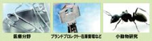 【極小タグ「世界最小クラス」】μmサイズの「小ささ」が最大のポイントの極小タグ”小さい”からこそ広がる”可能性” ・世界最小クラスのμmサイズ。このμmサイズにアンテナを搭載 ・全ての「微細なもの」を「トレース可能」にする世界最小クラスRFIDシステム■仕様/規格サイズ:900 × 900μm周波数:UHF帯通信距離:最大 2mm(環境により異なる)メモリサイズ:TID 176bit(書換不可)(FeRAM EPC 160bit(書換可能)