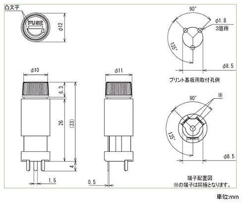 ■定格:250V-10A ■絶縁抵抗:DC500V、100MΩ以上 ■耐電圧:AC2000V(1分間) ■主絶縁材(本体):フェノール(UL94V-0) ■主絶縁材(ツマミ):P.B.T.(UL94V-0) ■端子金具:PC端子 ■本体色:B(黒) ■推奨適合工具:マイナスドライバー ■使用上の注意: ①規格品としてご使用の場合は、規格上の制約等をご確認ください。 ※写真はイメージです。 ※在庫切れの場合は別途御相談させて頂きます。