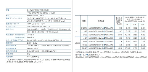 □基本特性/定格 容量:1GB (SLC) 動作周囲温度:-25 to +85℃ 保存温度:-40 to +85℃ □特徴 1. 自社開発、SDコントローラGBDriver RD4搭載。 2. 国産 4K、8KByte/Page(SLC)、16KByte/Page(pSLC)NAND型フラッシュメモリ搭載。 3. SD Specification ver.3.01対応。 SDHC(4GB~):UHS-I/SDスピードクラス Class10 対応。 SD(~2GB):SDスピードクラス Class6 対応。 4. 42bit/1KByte ECC搭載(4GB~)。24bit/1KByte ECC搭載(~2GB)。 5. TDK Global Staticウェアラベリング機能搭載。 6. データランダマイザ機能+オートリフレッシュ機能(起動時+24時間毎)搭載。 7. リードリトライ機能搭載。 8. 寿命診断ソフトTDK SMART付属。 9. 全セクタ数設定機能(クリッピング機能含む)搭載。 10. SDA準拠セキュリティー/TDKオリジナルセキュリティ機能搭載。 11. 専任FAEによる技術サポート対応。 12. RoHS指令対応。 □フラッシュストレージ総合カタログ https://product.tdk.com/system/files/dam/doc/content/flash-storage/ja/flashstorage-catalog_ja_01.pdf □用途 ドライブレコーダー 監視カメラ 計測器、データーロガー POS端末 医療機器(血圧計、画像診断装置)