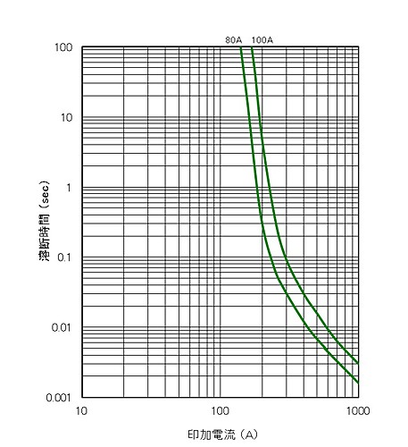 <仕様>●使用温度範囲 :-40~+125℃●定格電流 :80A、100A●定格電圧 :35VDC●電圧降下 :100mV以下●絶縁抵抗(端子-外装間) :1000MΩ以上●溶断特性 :定格電流の2.5倍の電流を通電した場合1分以内に溶断する●遮断特性 :遮断電圧:定格電圧●遮断電流 :600A※写真はイメージです。