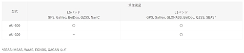 AU-500はL1とL5に対応したデュアルバンドアンテナ、AU-300はL1のみに対応したシングルバンドアンテナです。
