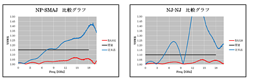 近年の情報化社会において、技術革新は著しい速さで進んでおります。無線設備や高周波設備においても、高集積化、処理の高速化等が進み、使用する周波数も高くなってきております。高性能同軸アダプタは、このような需要に応えるために、従来コネクタと設計・製造から一新した精密グレードシリーズです。従来コネクタの構造を徹底的に見直し、インピーダンスミスマッチングの除去により高性能化を実現いたしました。さらなる改善を進め、性能のみならずコストの最適化もこのたび実現いたしました。■特長・製品の性能に影響を及ぼさない高性能を実現。・使用用途の多いN-N・SMA-SMA・N-SMA の変換アダプタをラインアップ。・機械的強度、耐候性に優れたステンレスシェルを採用。■用途・電子計測器・有線無線通信機器及び基地局・放送装置など多様な接続、用途にご利用いただけます。精度を要求される測定に特に有用にご利用いただけます。■高性能VSWR 特性に関係深い箇所の加工精度を±0.03mm を超える値で加工。さらに繊細な微調整によりVSWR:1.10 以下@18GHz を実現しました。(N-SMA 変換はVSWR:1.15 以下)コネクタ開口部は、Interface, test connector のMIL-STD-348A に準拠し、オス・メス嵌合部におけるミスマッチを最少に設計しました。
