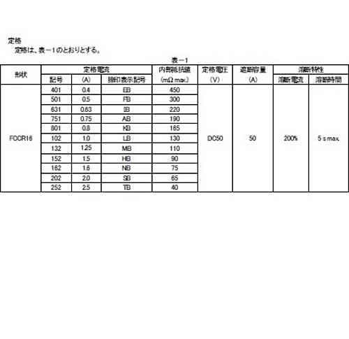 【特徴】 ・小型携帯機器及び情報端末等の回路保護に最適です。 ・従来のFCC ABシリーズから内部抵抗値の低減に成功。 電圧降下、消費電力が小さくなります。 ・1608サイズで定格電圧50Vd.c.をラインアップ。 ・UL、c-ULの認定を受けています。 ・File No.:E176847